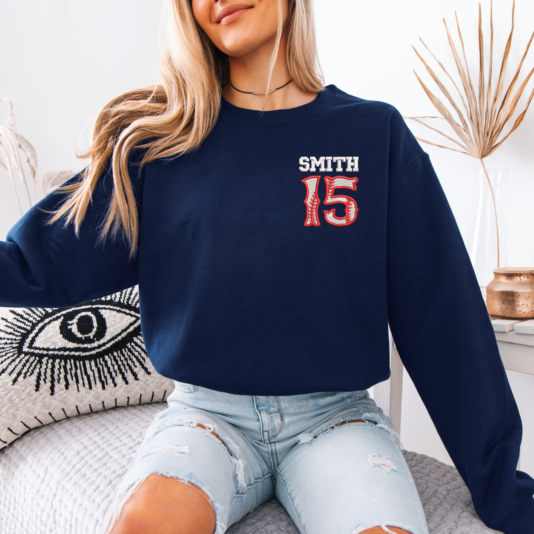 Baseball Name And Number | Unisex Crewneck Embroidered Sweater