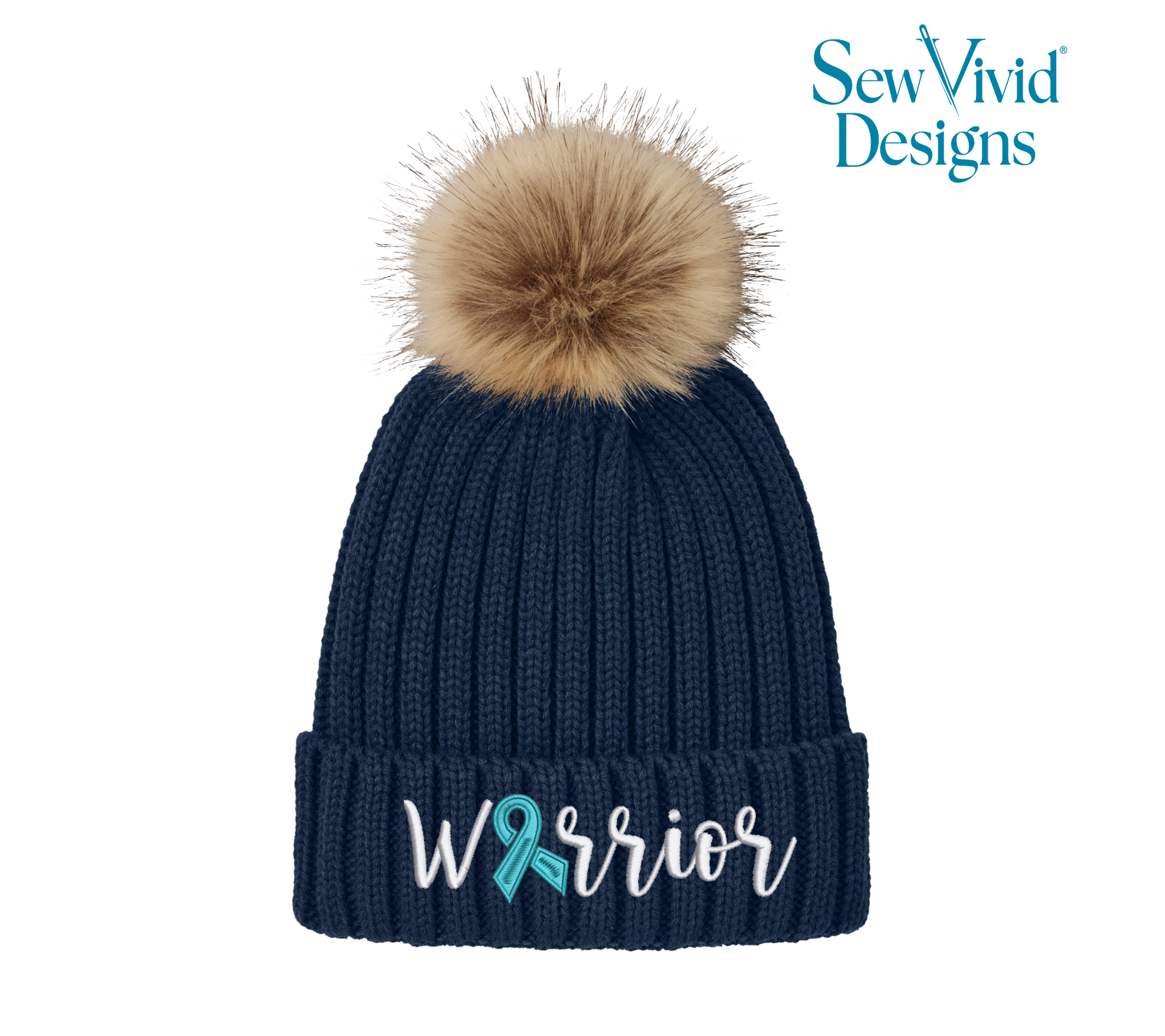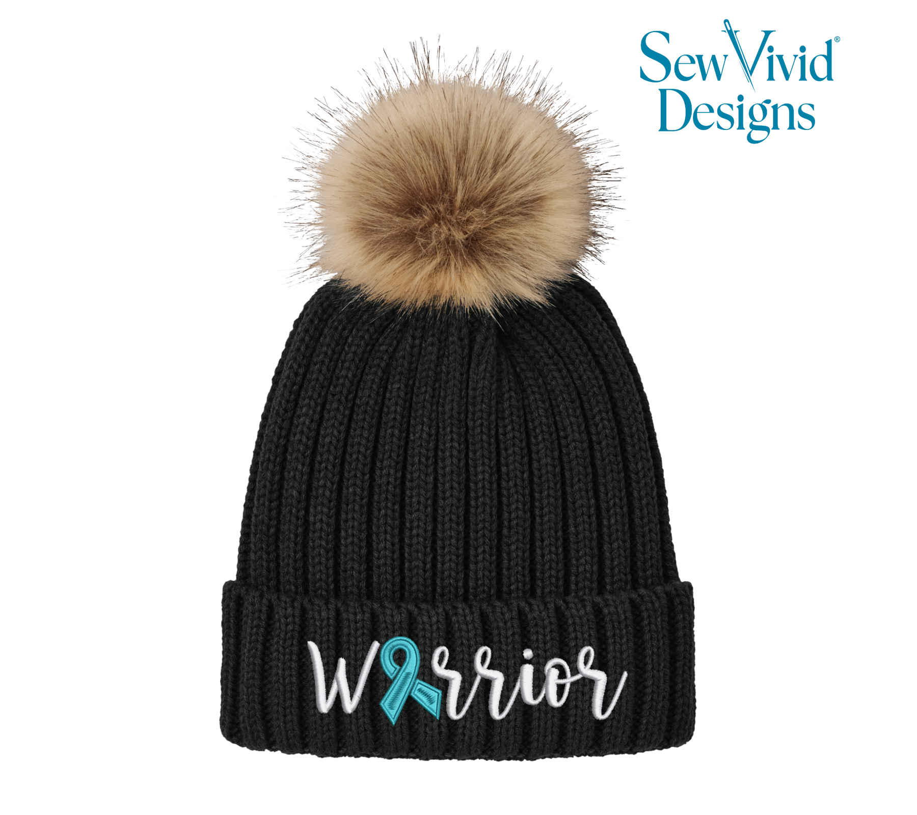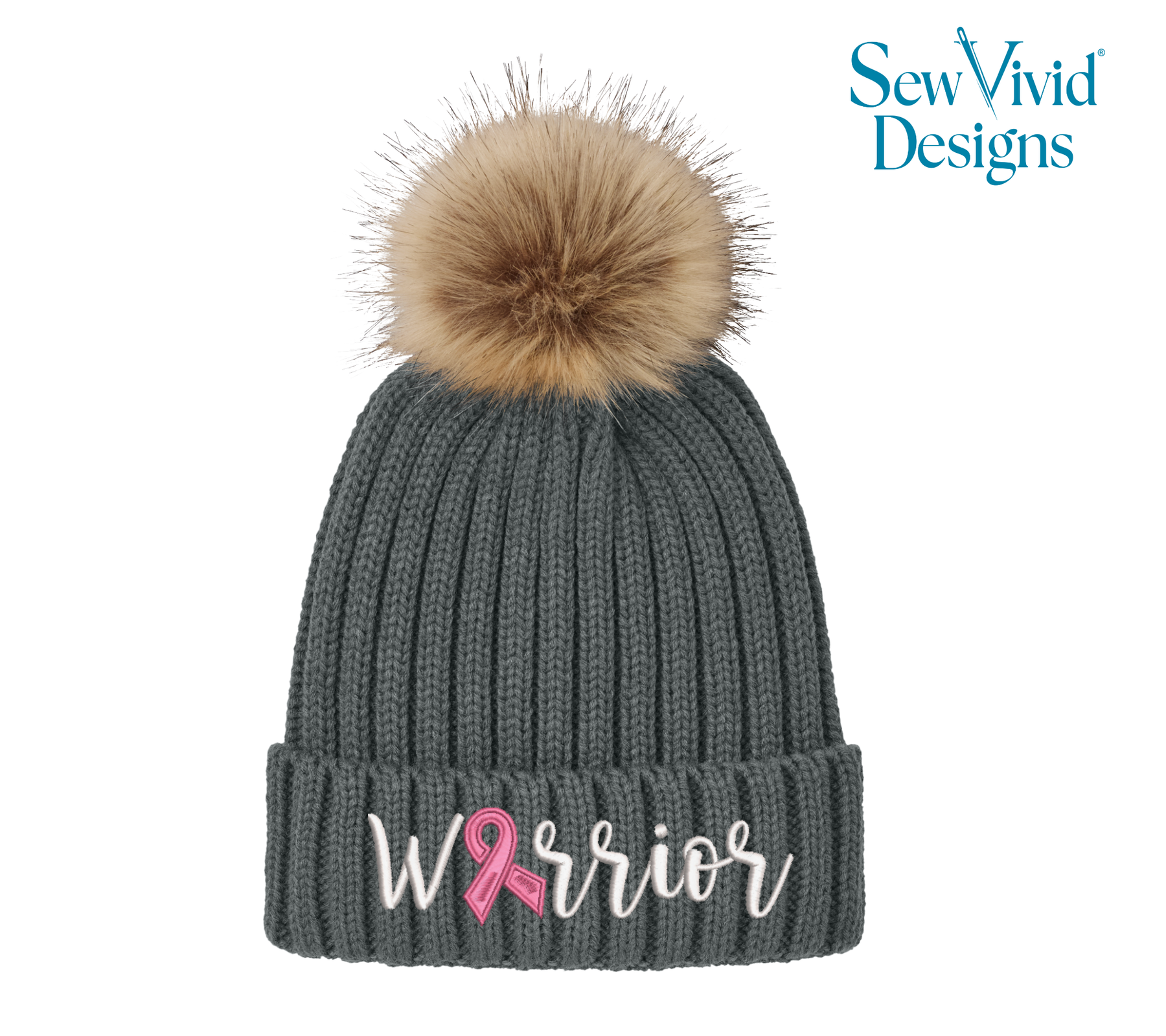 Cancer Warrior | Embroidered Pom-Pom Beanie
