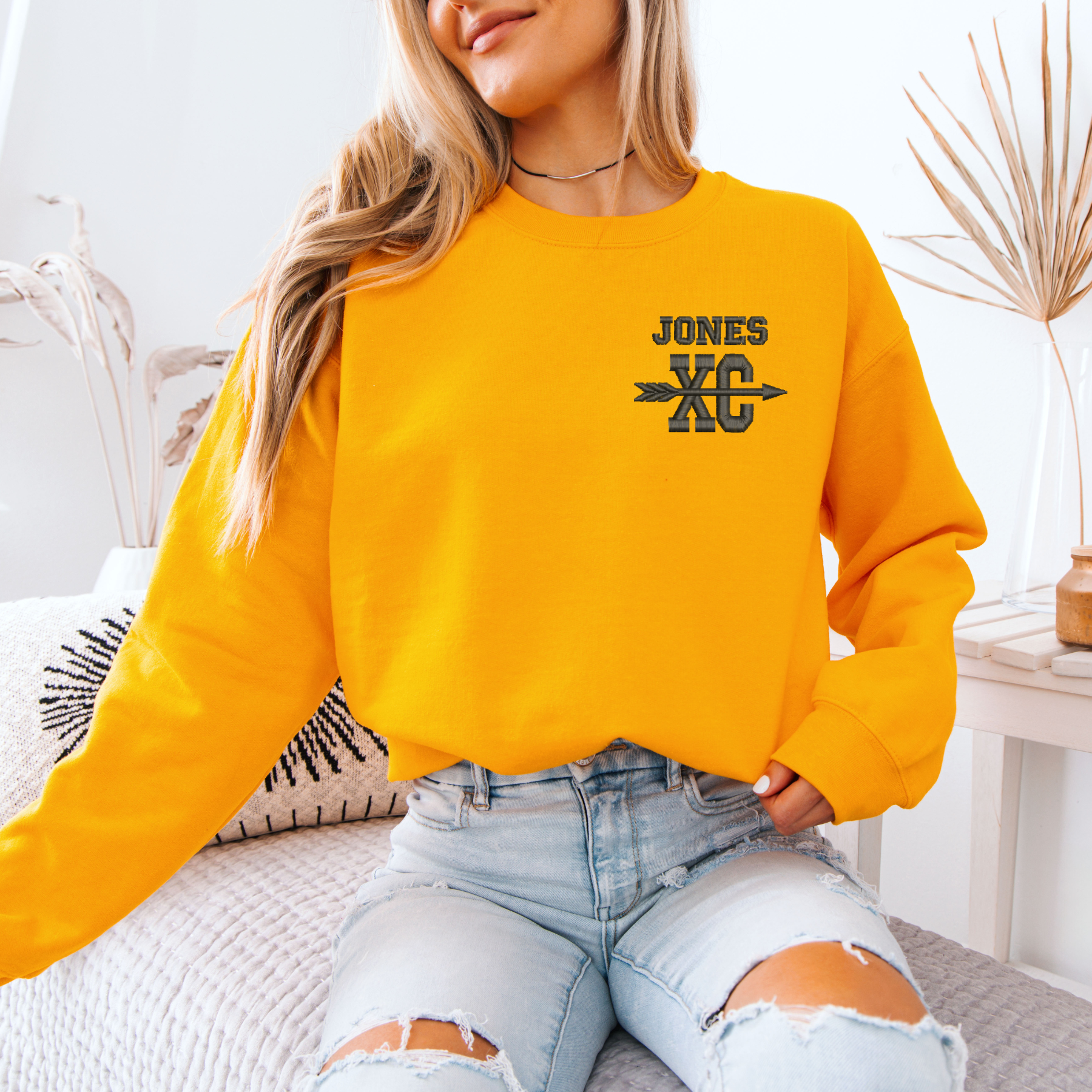 FEATURED SWEATER: RED with WHITE text for the name and XC symbol