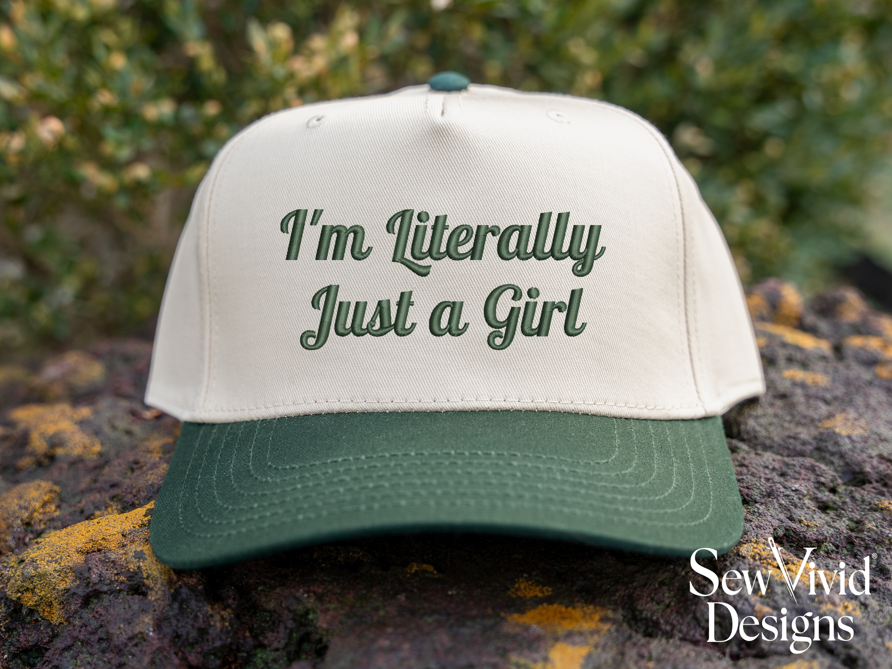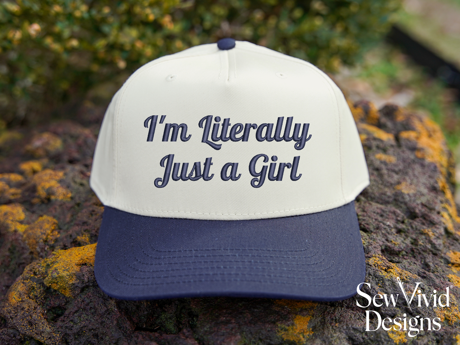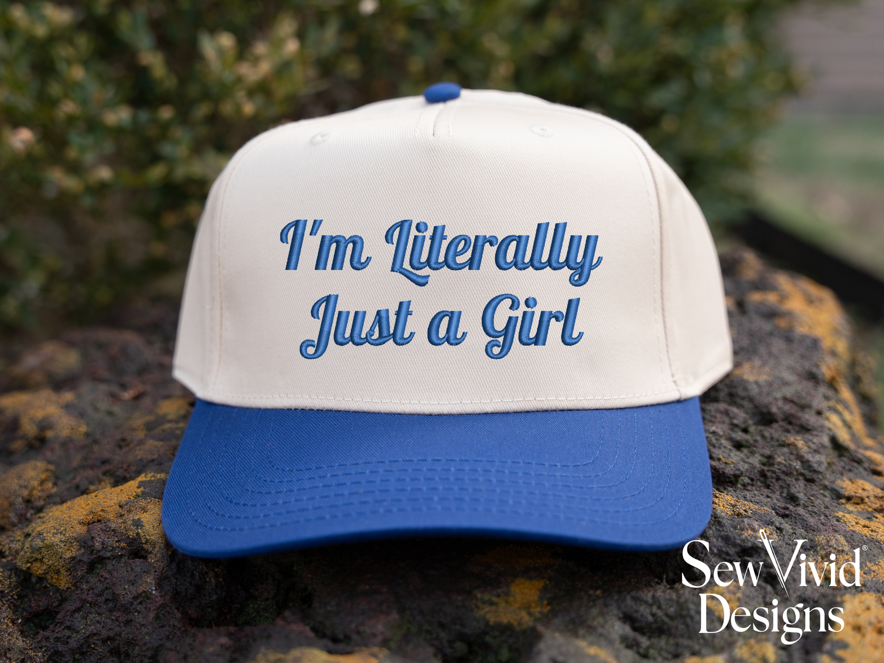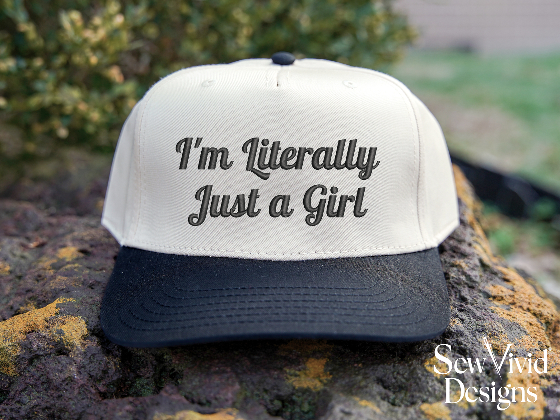 This cap features I'm Literally Just a Girl embroidered on your choice of cap. Cap options shown in photos.
