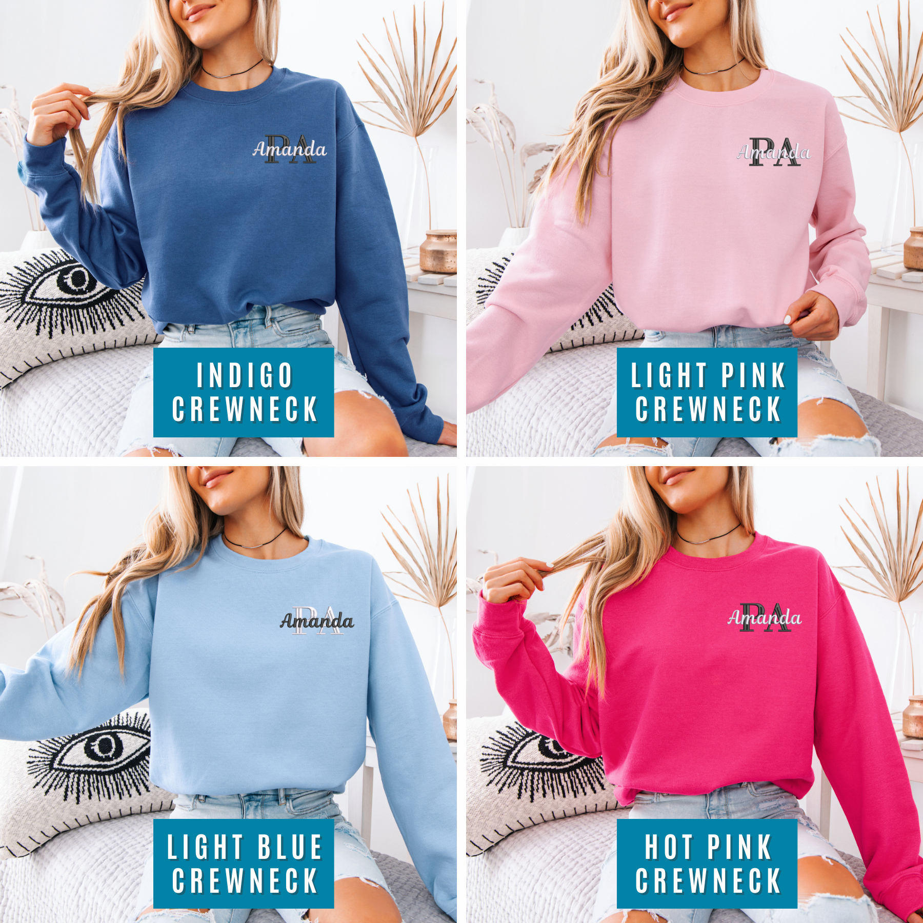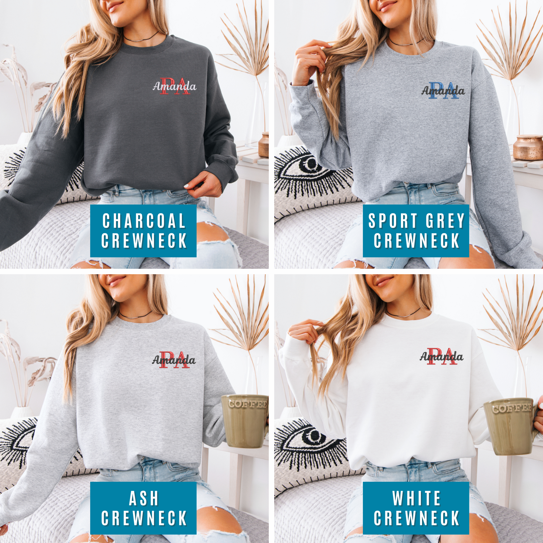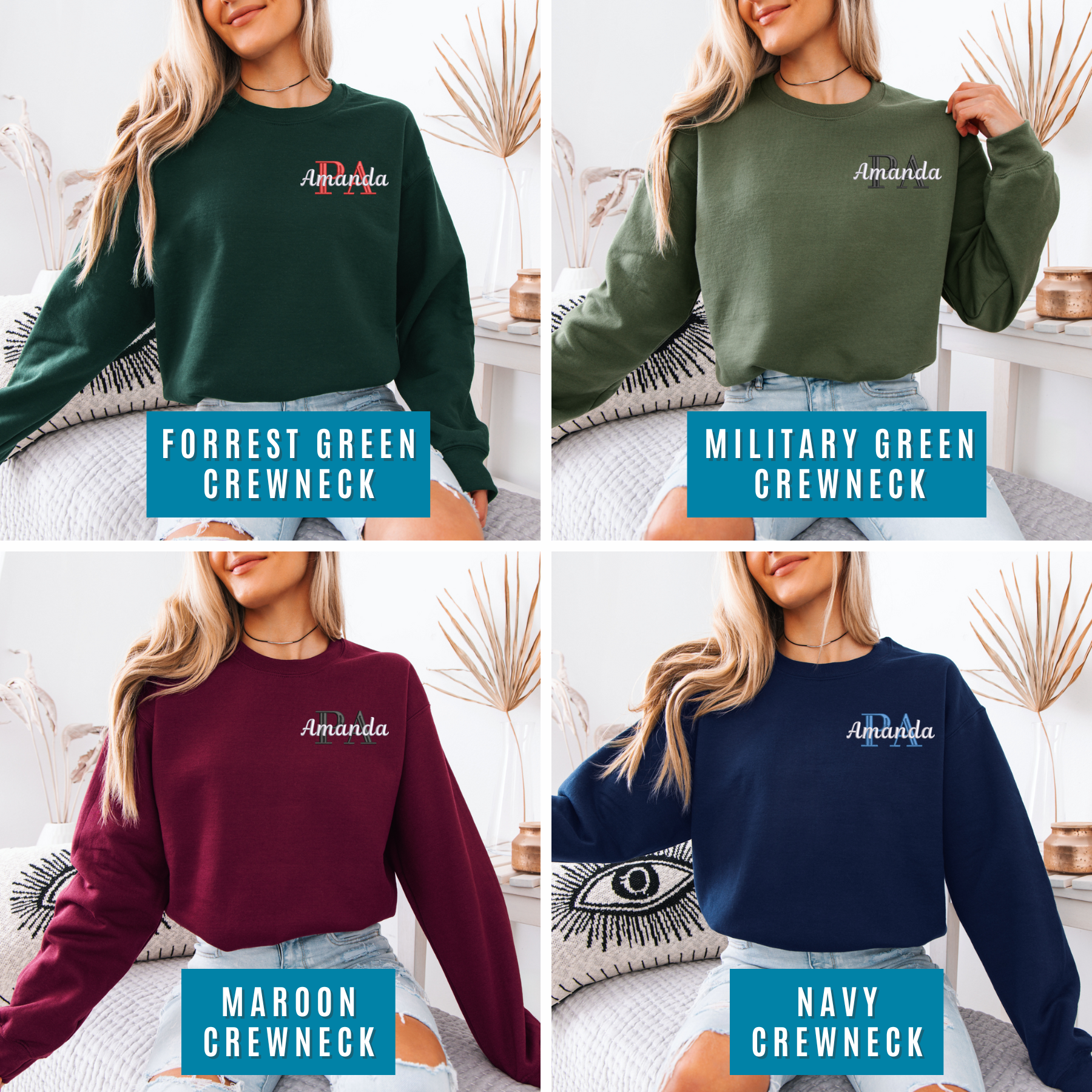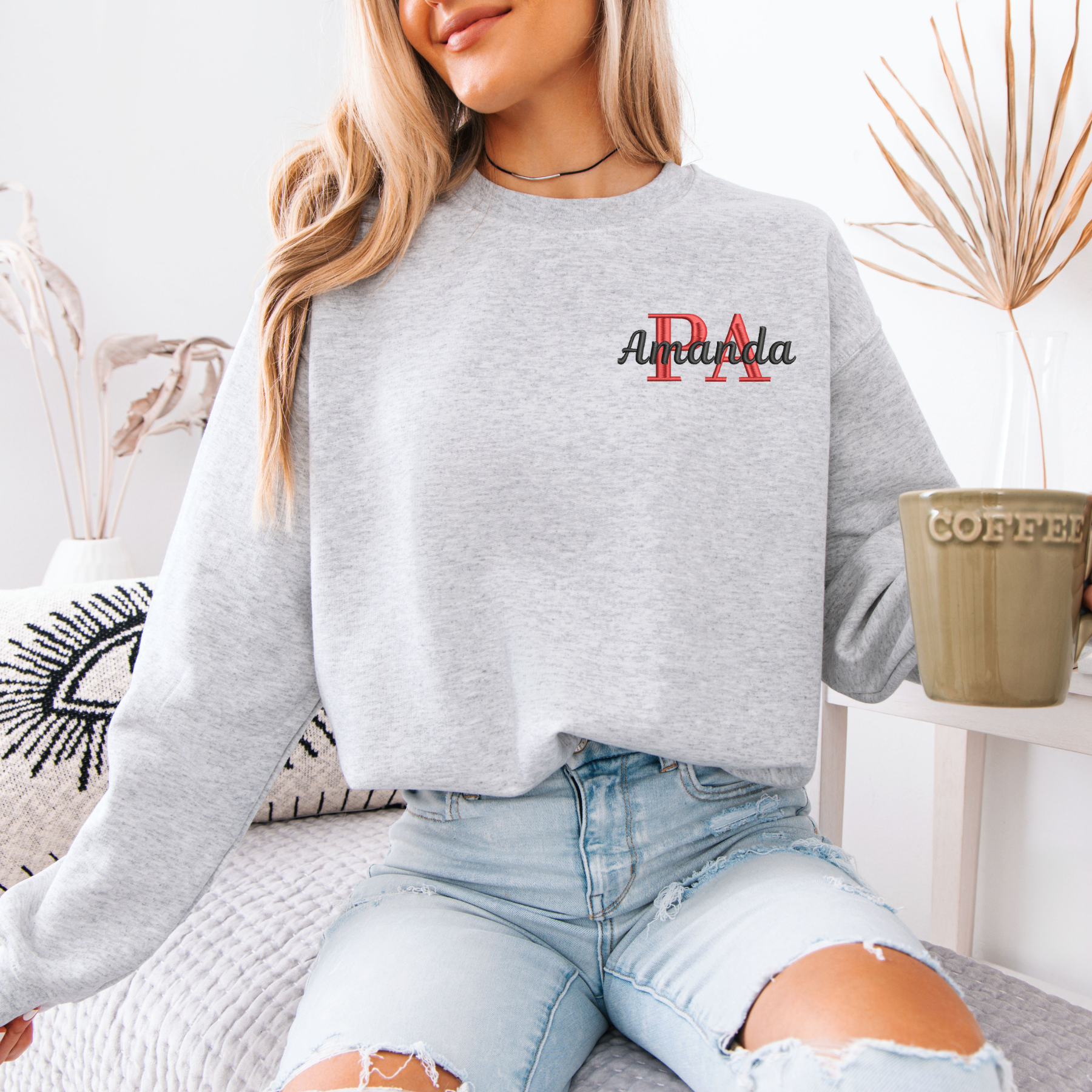 This cozy unisex sweater features PA with your name embroidered on your selected sweater color and size.