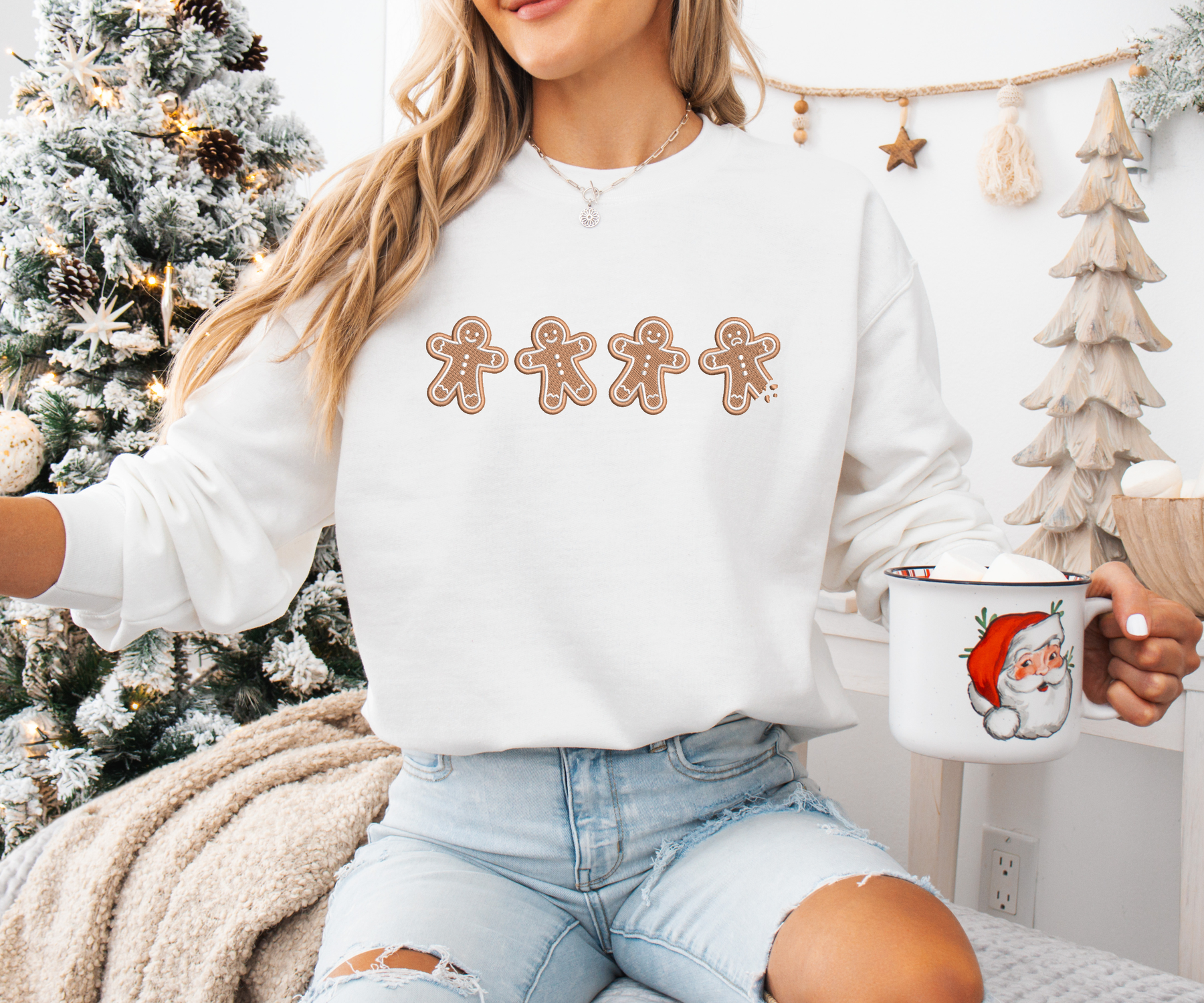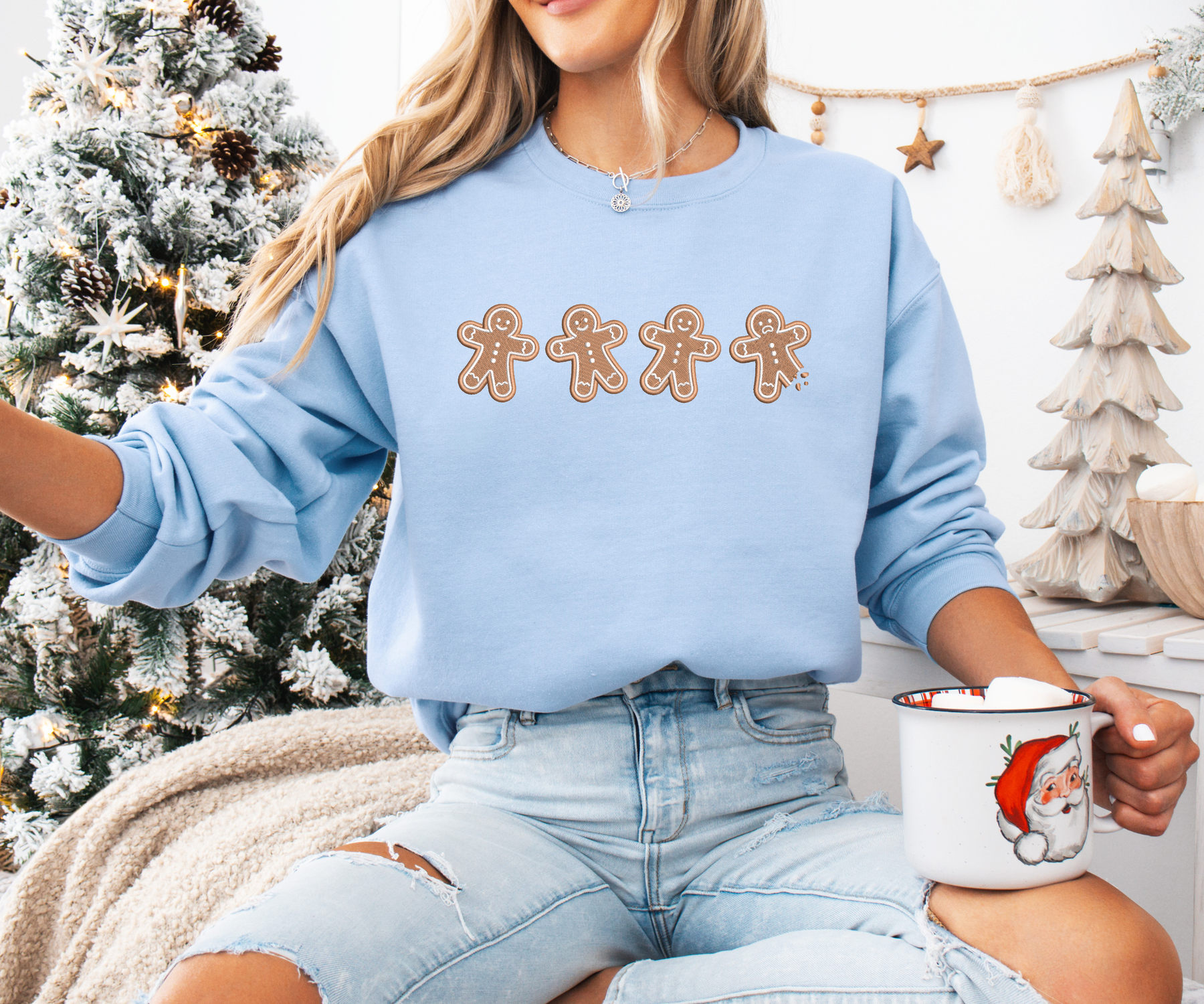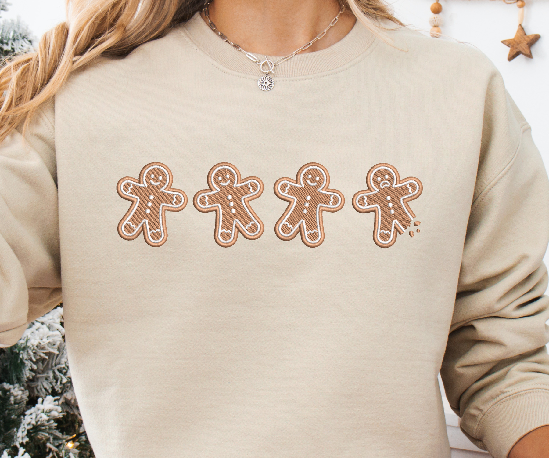 This cozy unisex sweater features 4 gingerbread men embroidered on your selected sweater color and size.