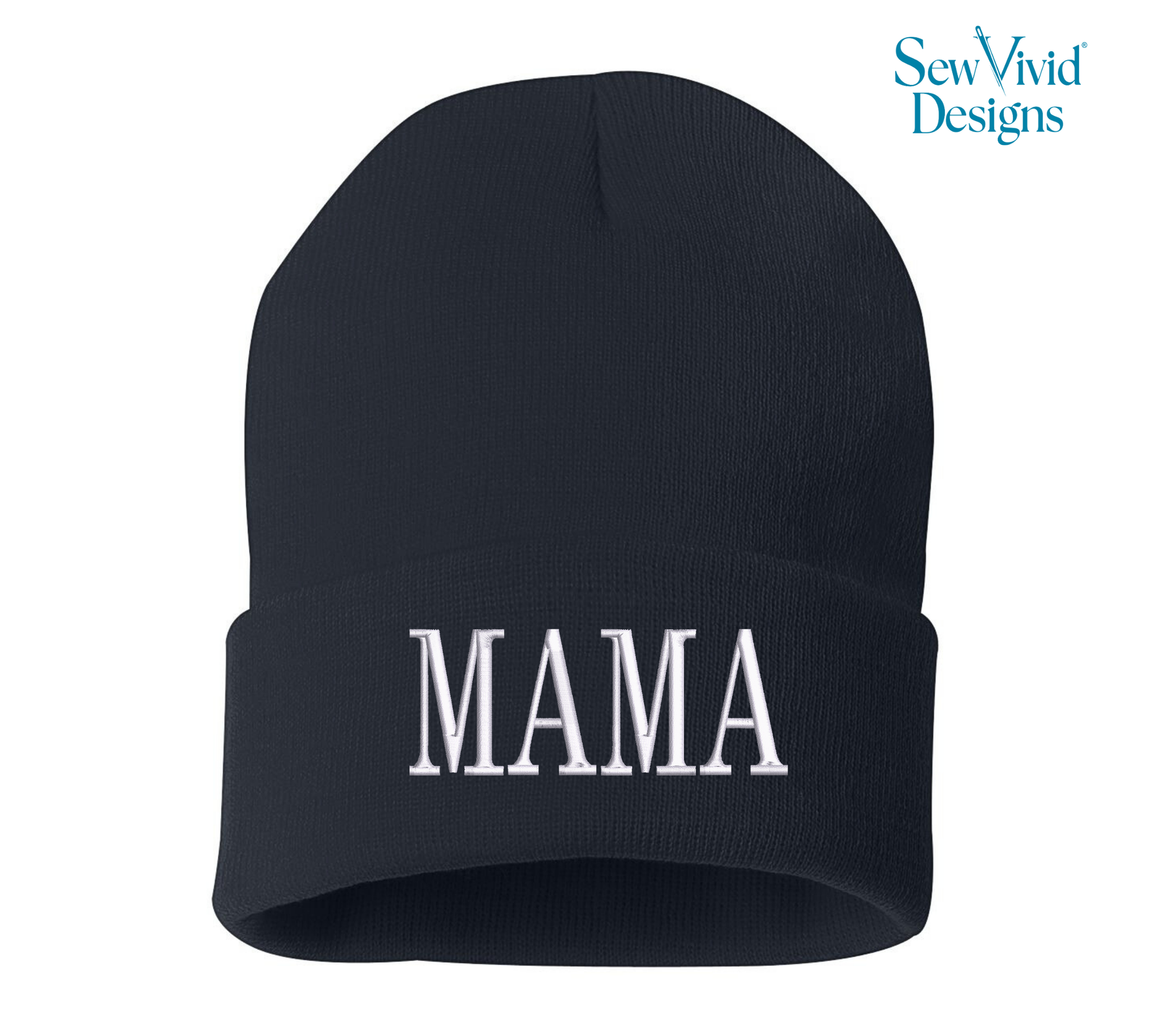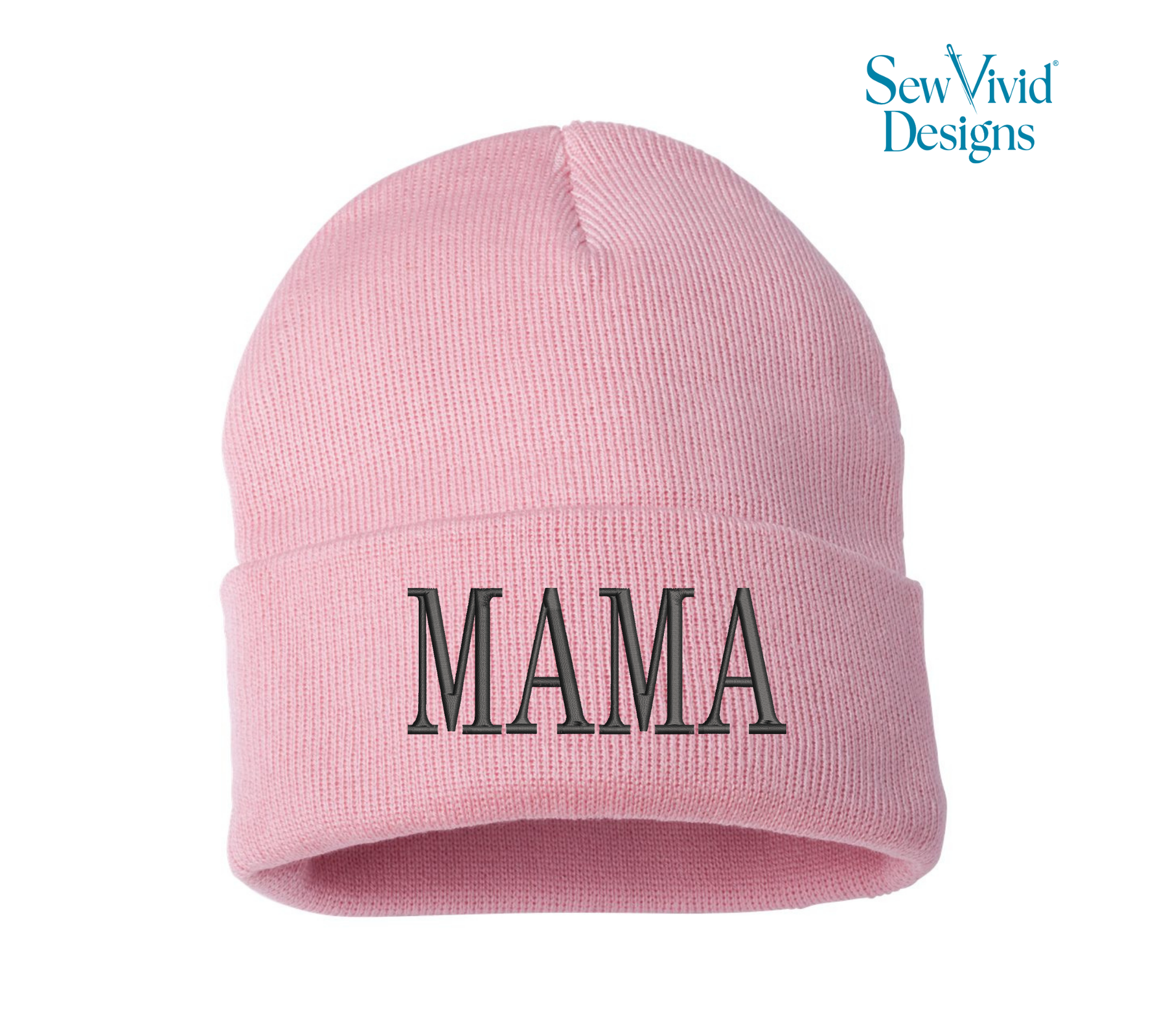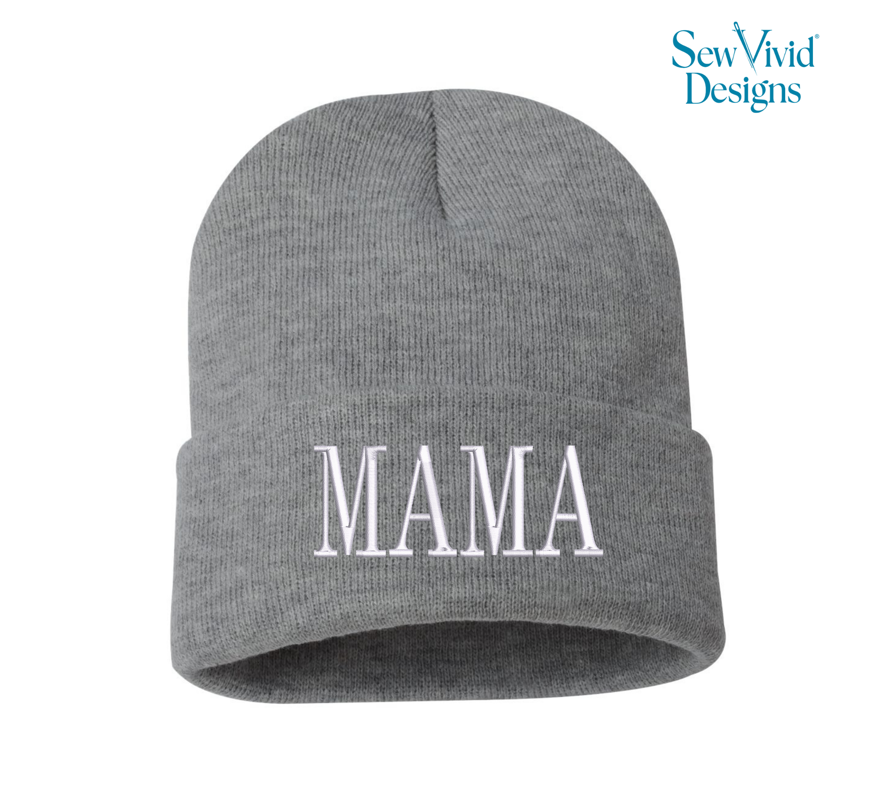 This beanie features MAMA (or your custom name!) embroidered on your choice of beanie.