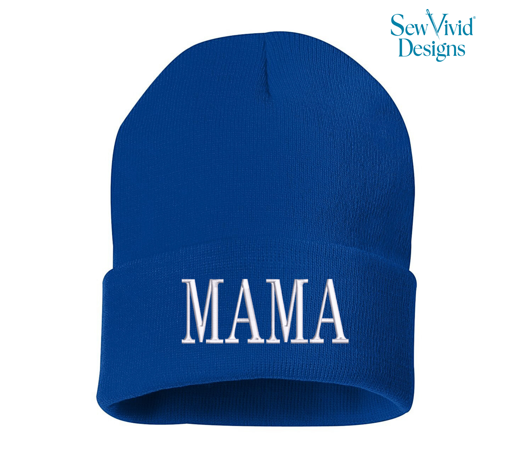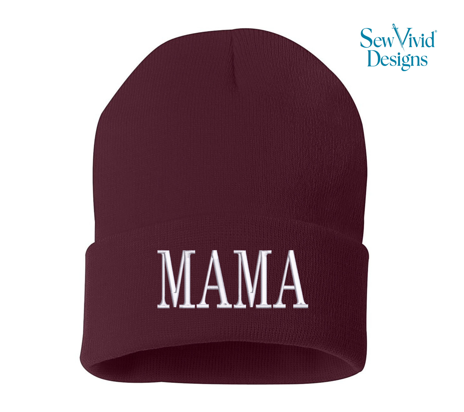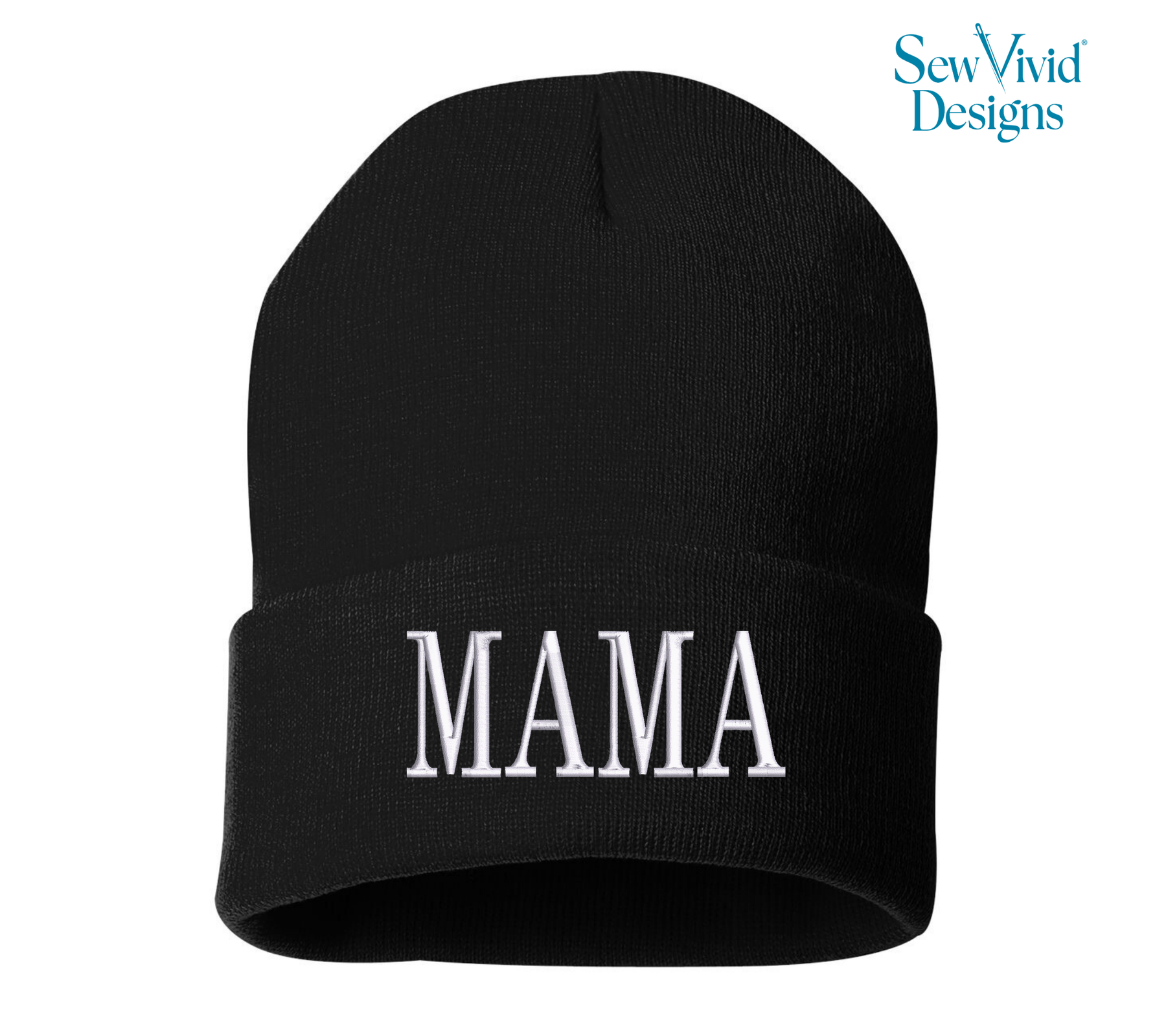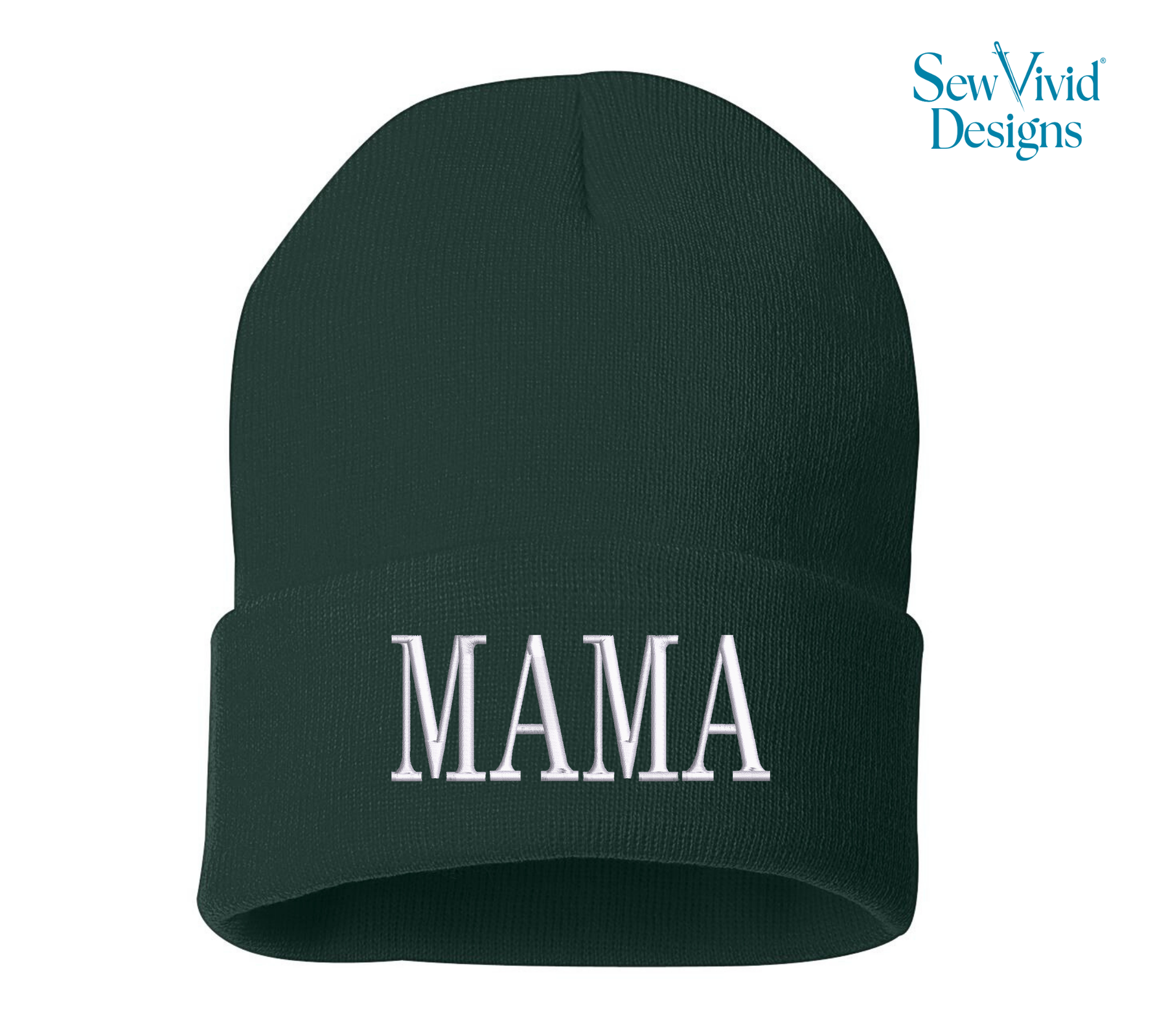 This beanie features MAMA (or your custom name!) embroidered on your choice of beanie.