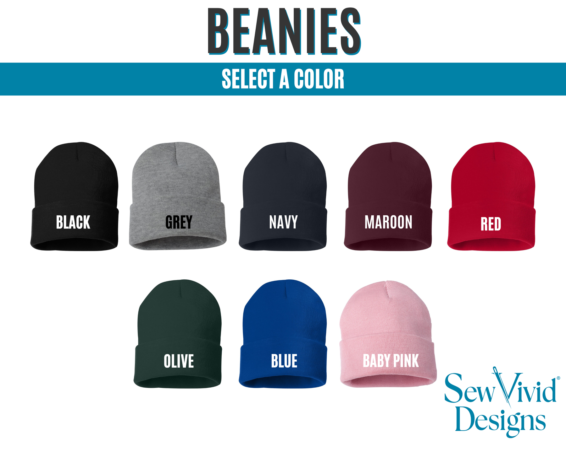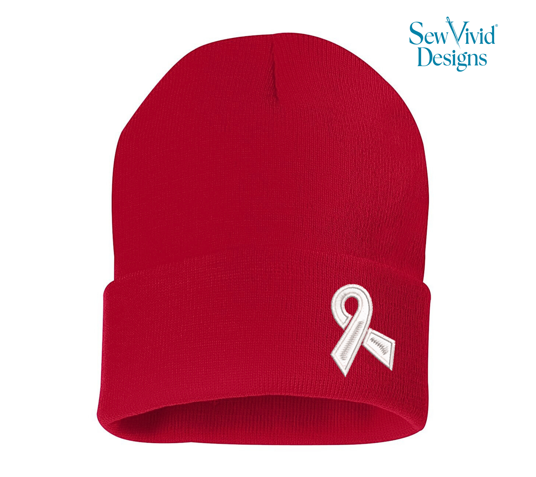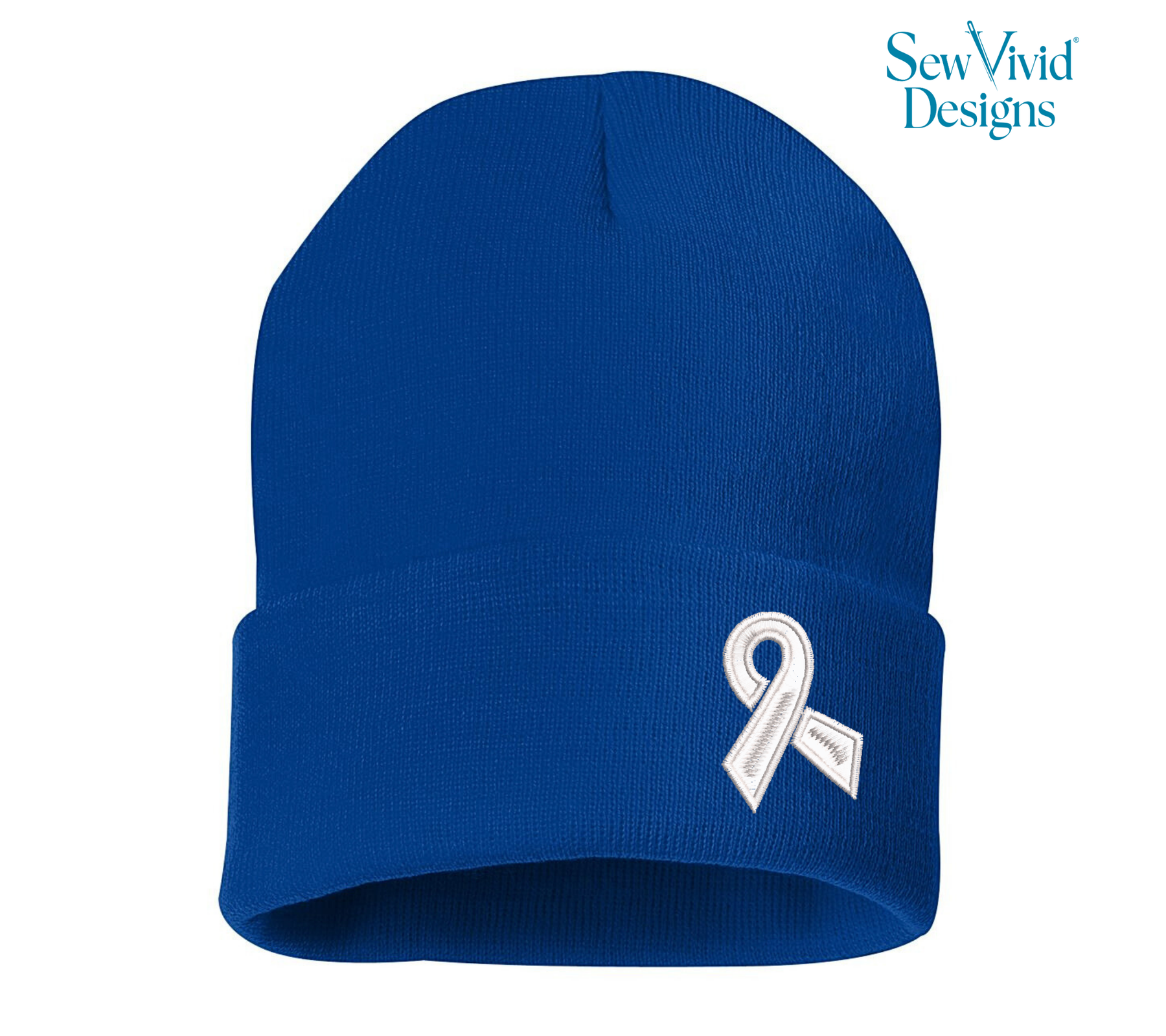 This beanie features a cancer ribbon embroidered on your choice of beanie.