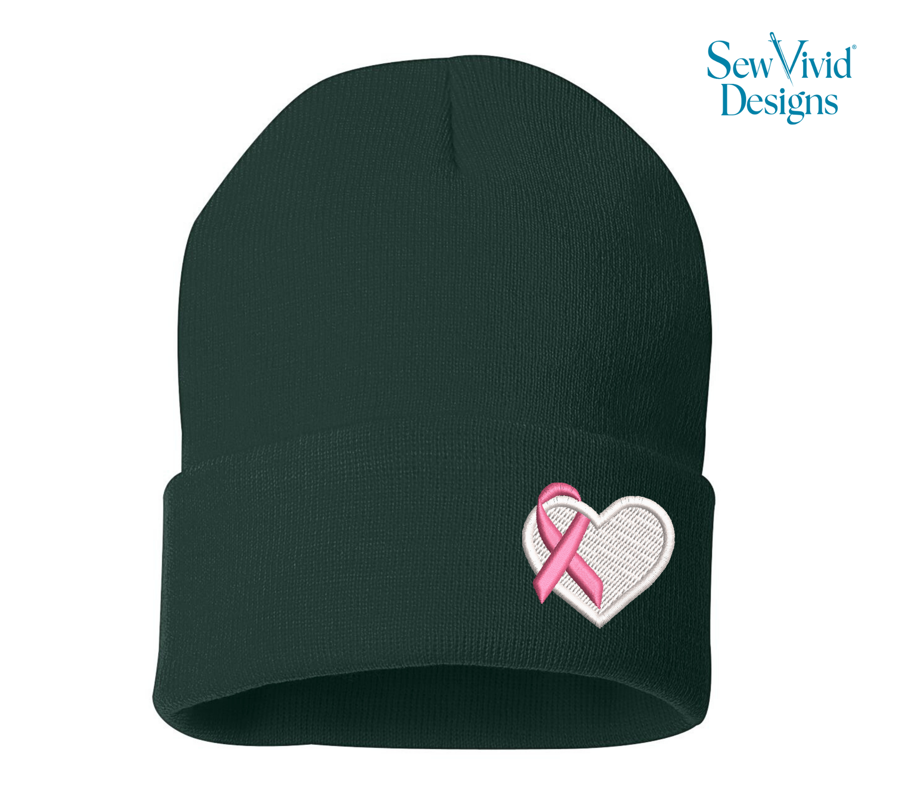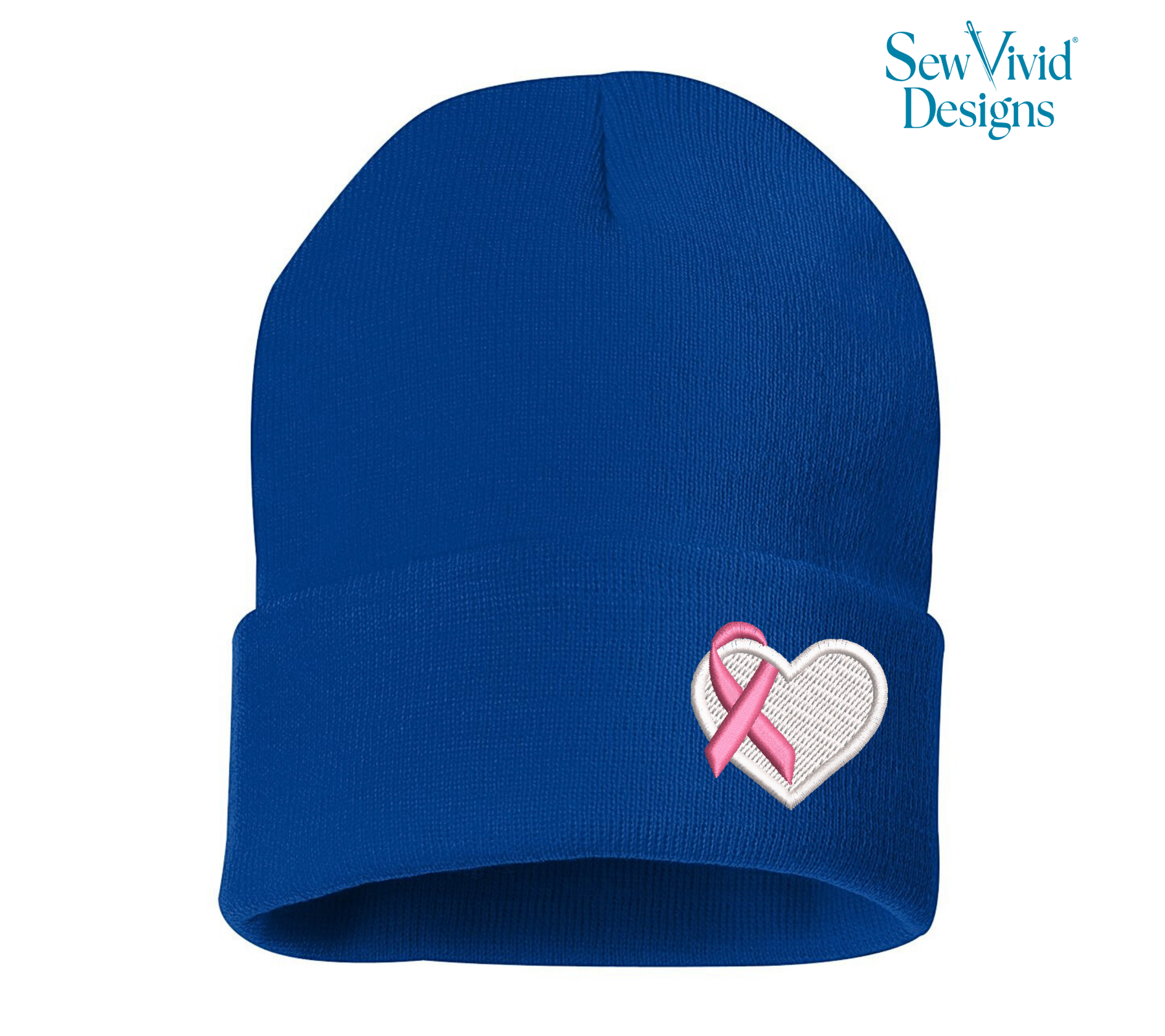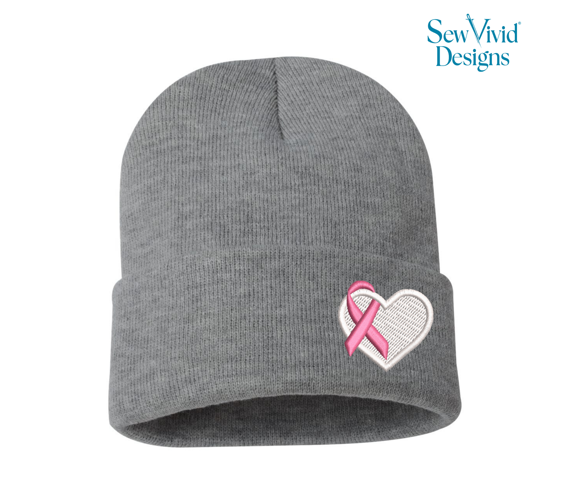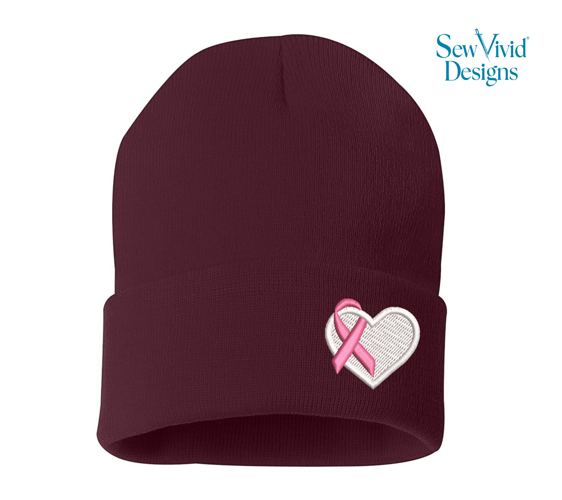 This beanie features a heart with a cancer ribbon embroidered on your choice of beanie.