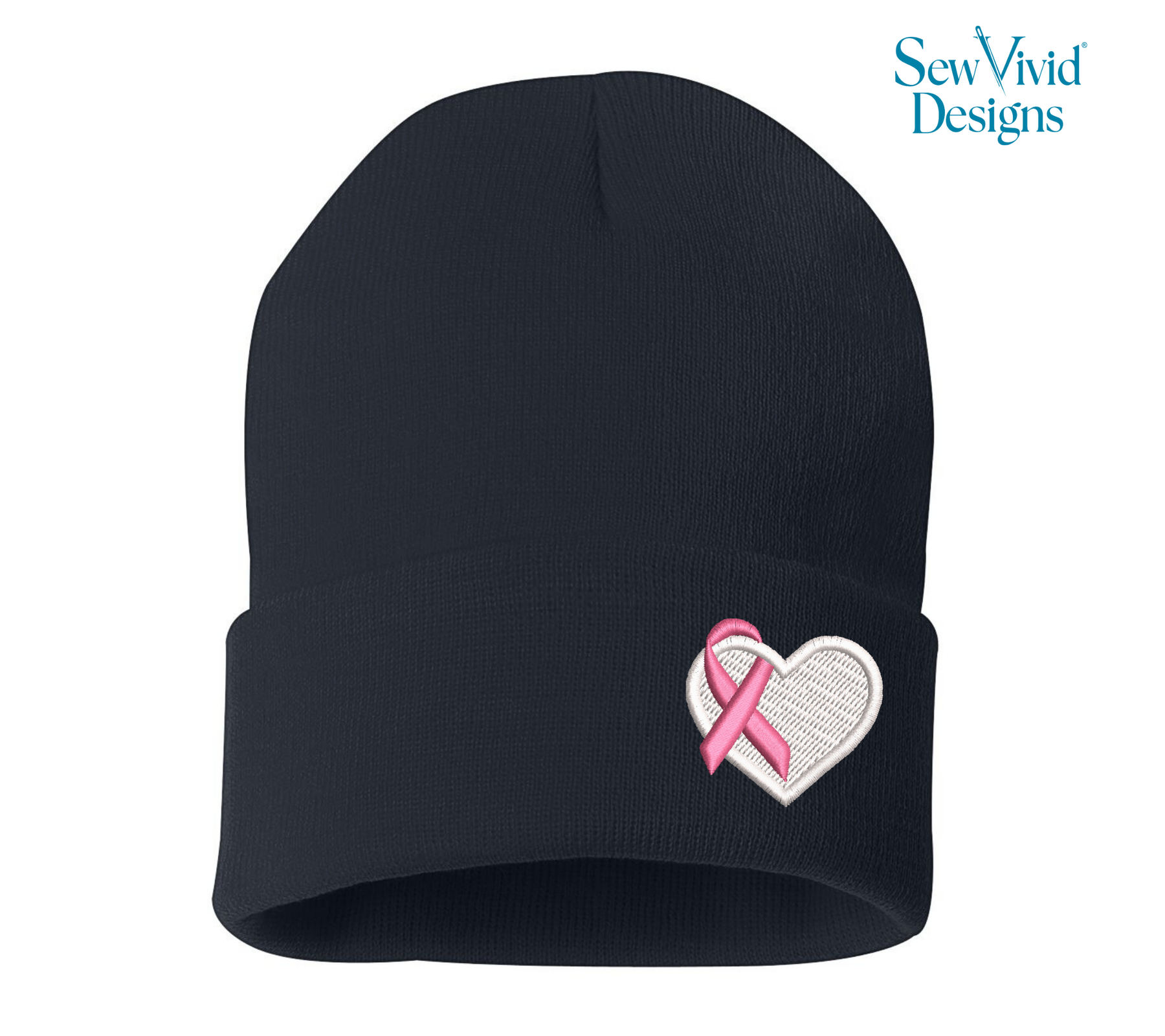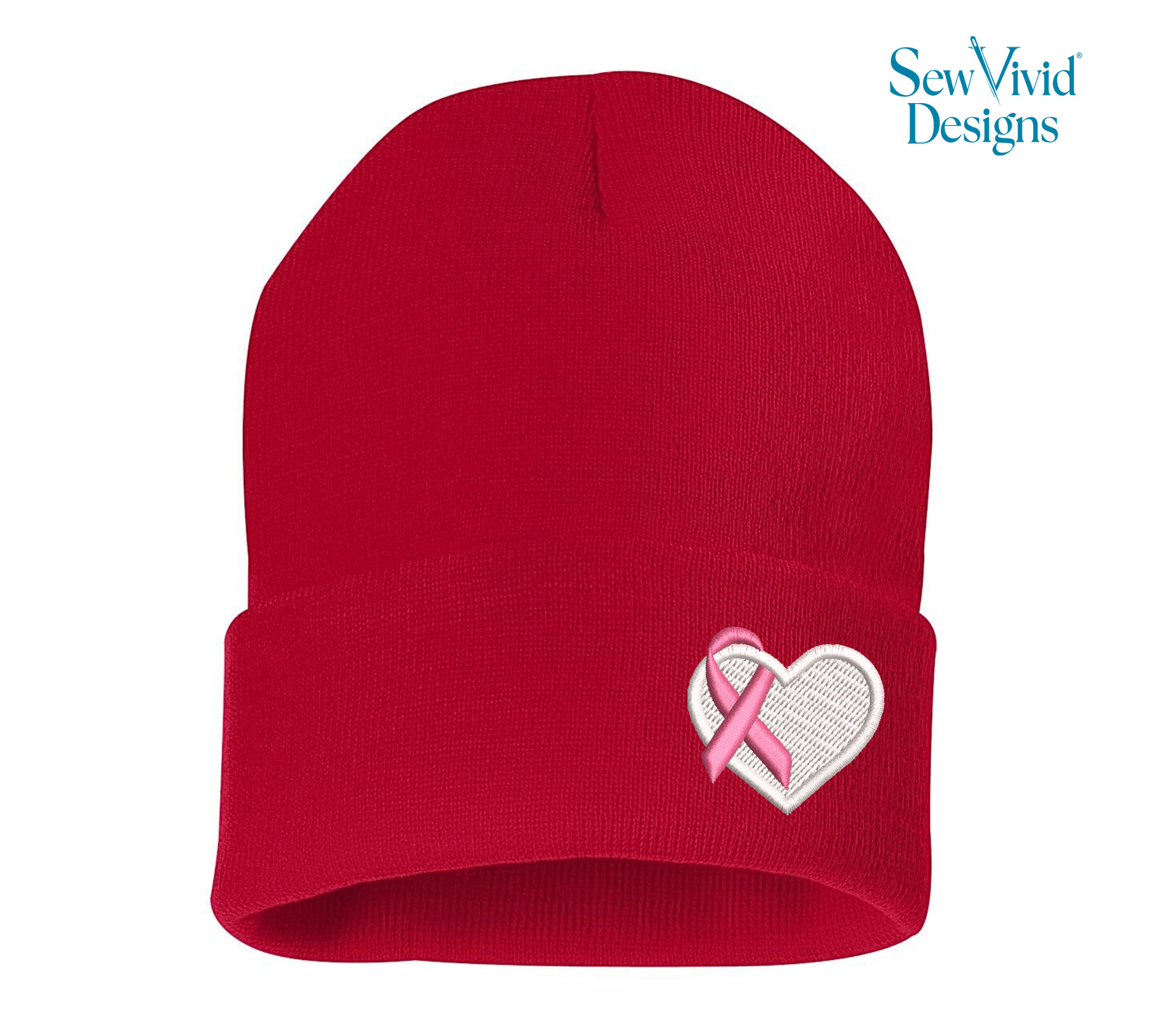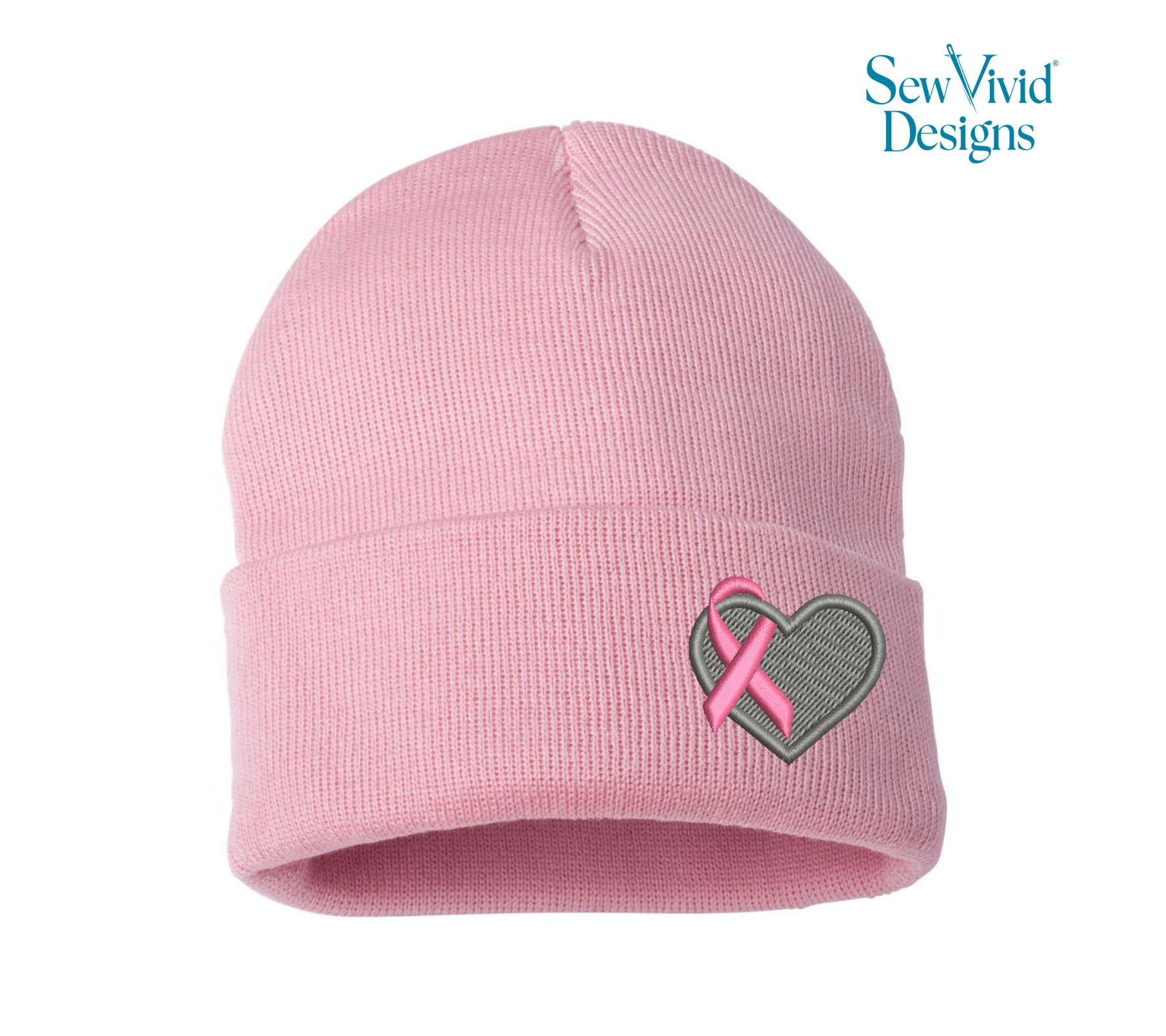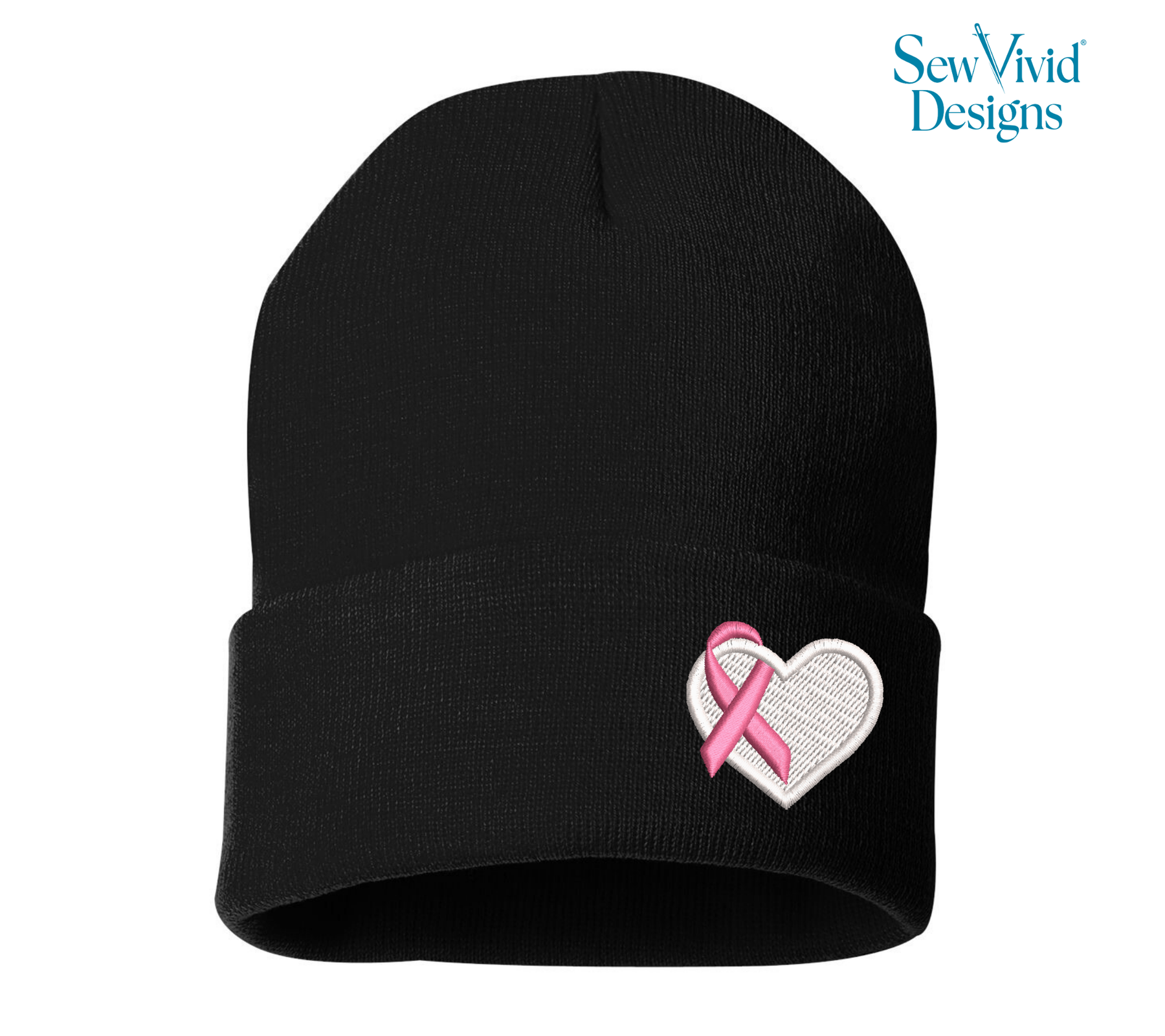 This beanie features a heart with a cancer ribbon embroidered on your choice of beanie.